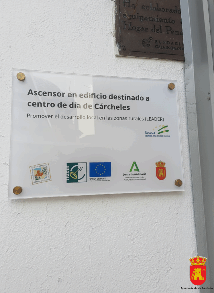 El Ayuntamiento de Cárcheles ha sido beneficiario de una subvención de 26.659,60 euros para la instalación de ascensor en edificio municipal destinado a Centro de Día de Cárcheles al amparo de las ayudas previstas en las Estrategias de Desarrollo Local Leader en el marco de la submedida 19.2 del Programa de Desarrollo Rural de Andalucía 2014-2022, gestionadas por el Grupo de Desarrollo Rural de Sierra Mágina. Estas ayudas se encuentran cofinanciadas en un 90 por cien por el Fondo Europeo Agrícola y de Desarrollo Rural (FEADER) y un 10 por cien por la Consejería de Agricultura, Pesca, Agua y Desarrollo Rural de la Junta de Andalucía. Este proyecto contribuye a mejorar la calidad de vida de las personas mayores del municipio, al facilitar el desplazamiento dentro del edificio, promoviendo una mayor participación en las actividades del centro y contribuye al bienestar físico, emocional y social de sus usuarios.