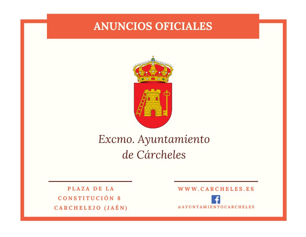 D. ENRIQUE PUÑAL RUEDA, ALCALDE-PRESIDENTE DEL AYUNTAMIENTO DE CARCHELES.- (JAEN) HACE SABER: Con motivo de la elaboración del programa de fiestas 2.024, tanto de Carchelejo como de Cárchel, se informa a todas las empresas que estén interesadas […]