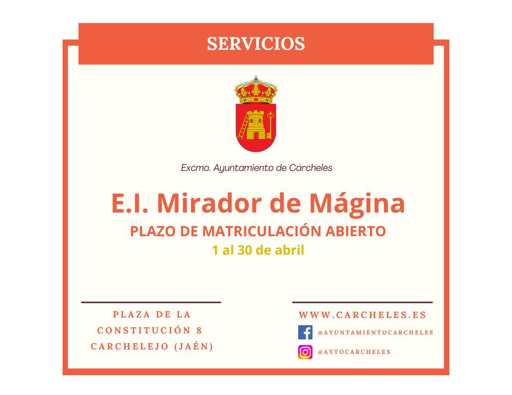 #SERVICIOS | Abierto el plazo de presentación de solicitudes para la admisión de niños y niñas de 0 a 3 años en le Escuela Infantil Municipal «Mirador de Mágina» Titularidad de este Ayuntamiento para el curso escolar 2025/2026. […]