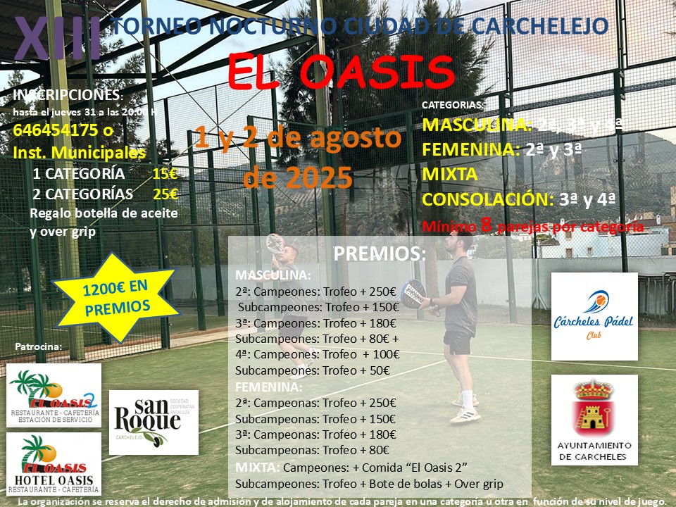 El torneo nocturno más veterano de nuestra provincia vuelve con una nueva edición del mejor pádel provincial. Gran desembolso en premios, que hacen de nuestro torneo veraniego una referencia. Disfrutaremos del pádel y del ambiente mágico que se […]