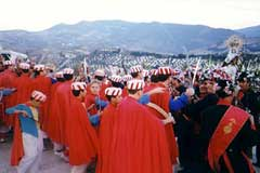 Por otro lado, hemos de considerar la identificación básica que realiza el pueblo llano entre victoria e intervención sobrenatural, simultaneando las representaciones de moros y cristianos con las fiestas de la patrona. Esta coincidencia puede tener su origen en el adiestramiento que periódicamente debían realizar las milicias concejiles y con el paso del tiempo llegó a hacerse coincidir con las fiestas patronales, días en que se abandonan los trabajos agrícolas y aprovechan para realizar la instrucción militar.